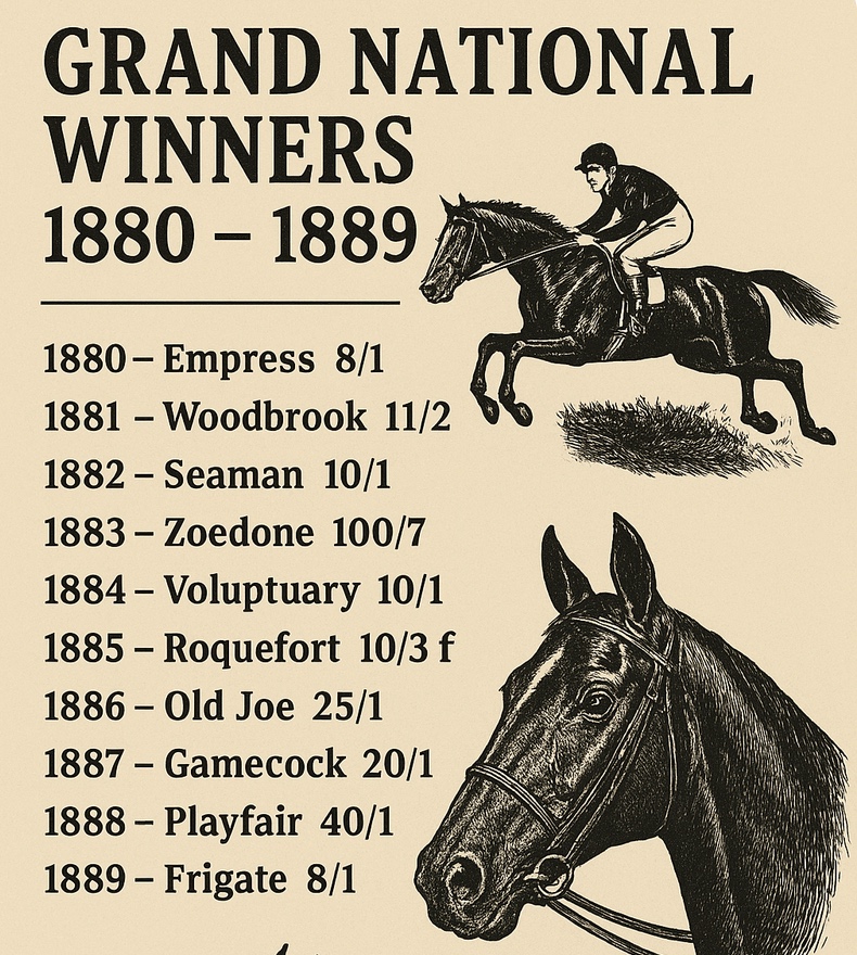 Beasley would taste victory once more with the victory of Frigate in 1889 for trainer-owner Mat Maher. The 11 year old won at odds of 8/1 by one length from Why Not, who would go on to win the National in 1894.